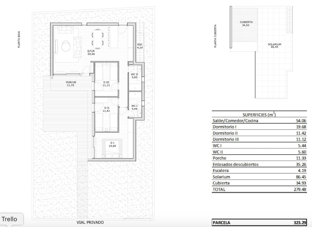 Każda willa posiada 3 sypialnie, 2 łazienki oraz przestronne solarium.