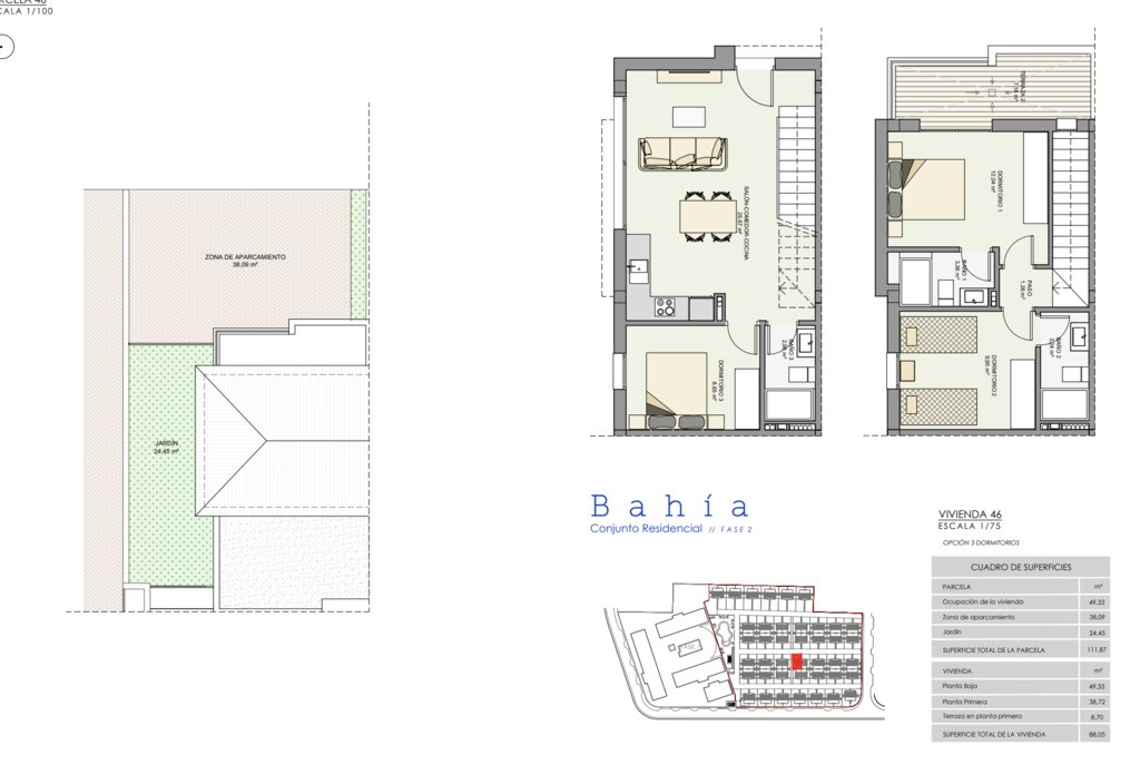 Nieruchomości oferują 93 m² powierzchni użytkowej, funkcjonalnie zaprojektowanej z myślą o wygodzie i codziennym użytkowaniu. Wnętrza obejmują 3 sypialnie, zapewniając przestrzeń zarówno dla rodzin, jak i osób poszukujących drugiego domu w Hiszpanii.