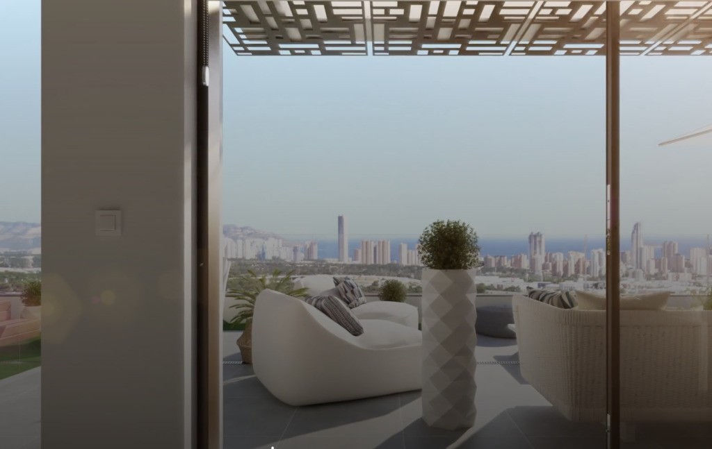 Nieruchomość położona jest w malowniczym otoczeniu z widokiem na Morze Śródziemne i panoramę Benidorm.
