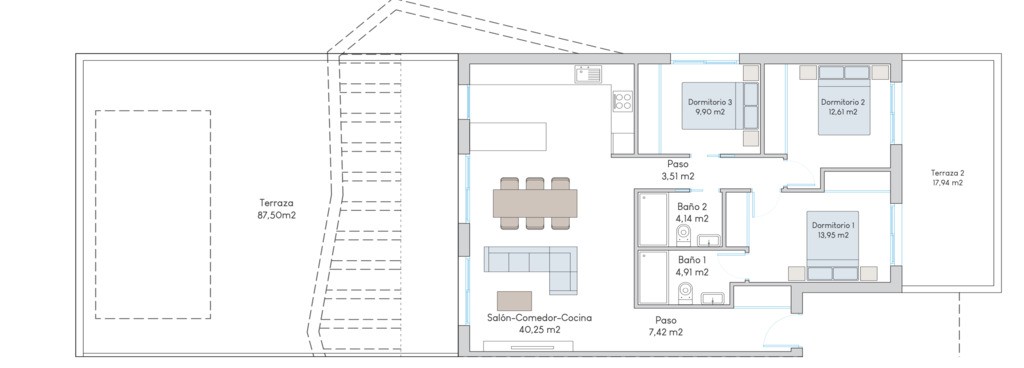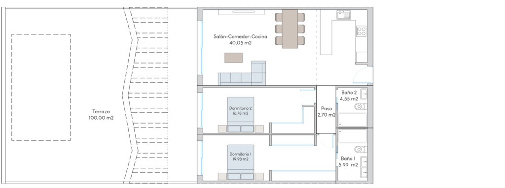 Funkcjonalność i przestronnośćW ofercie bungalowy z 2 lub 3 sypialniami i 2 łazienkami, z przestronną strefą dzienną i dużymi tarasami, które pozwalają cieszyć się naturalnym światłem przez cały dzień. Z okien roztacza się panoramiczny widok na Benidorm i Morze Śródziemne, tworząc idealne warunki do relaksu i codziennego życia.